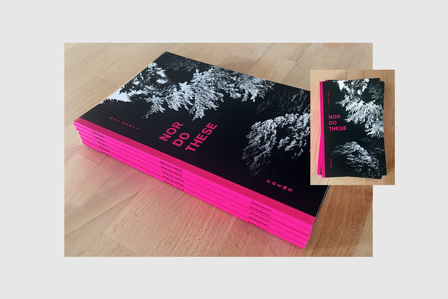“Nor Do These came out of a tandem exercise that quickly shed participants. It aims to address a series of obsessions, including the eroticism of accountancy, honed corporate strategy, dangerous unicorn hunts, the lives, phobias and phobia-related injuries of arguably obscure baseball players, and age and aging, among other things. It is Max Brett’s first book.” —Max Brett